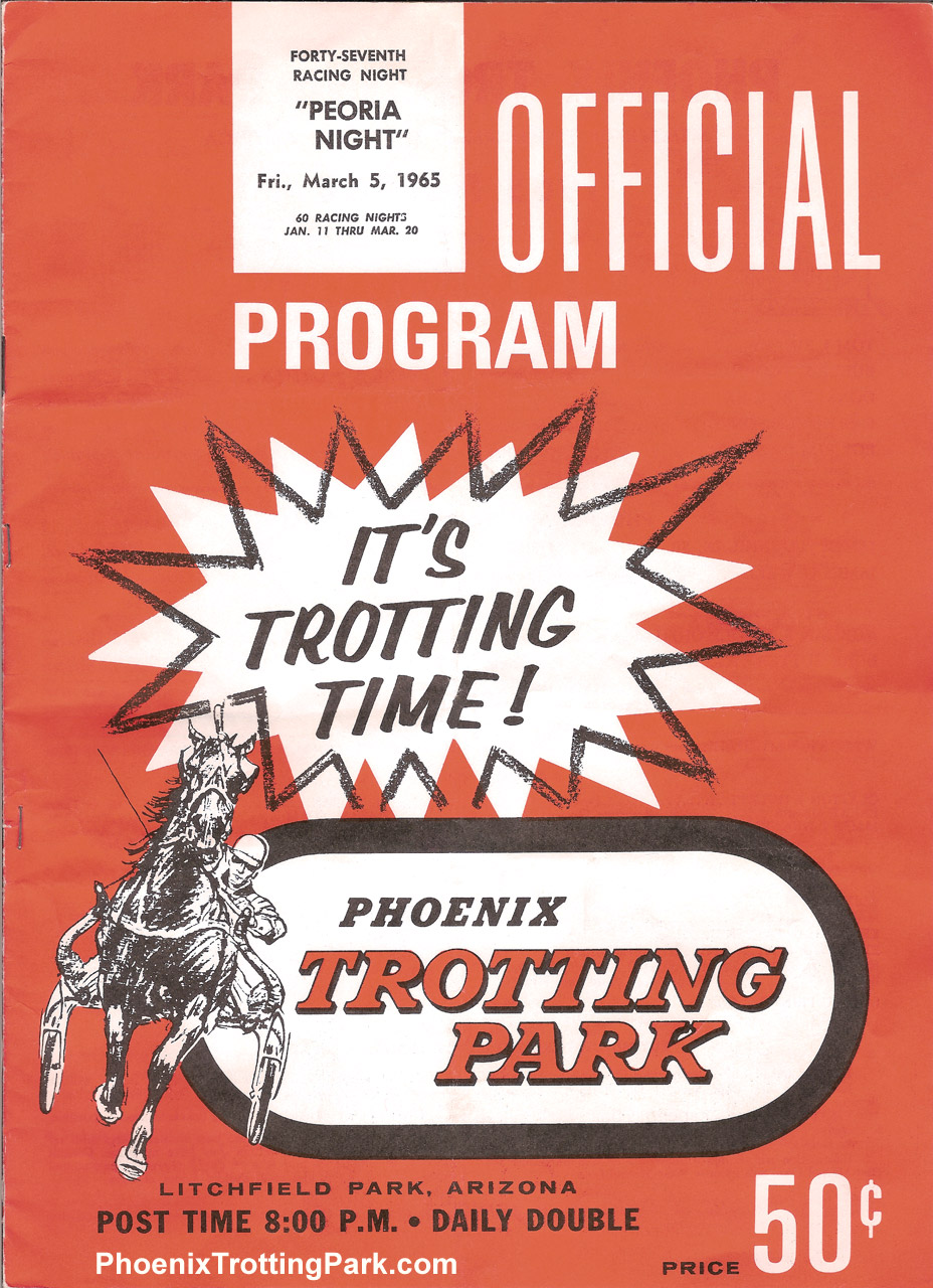 Phoenix Trotting Park on the cover of the Jan. 20, 1965 issue of The Harness Horse magazine. Photo by: Annie.