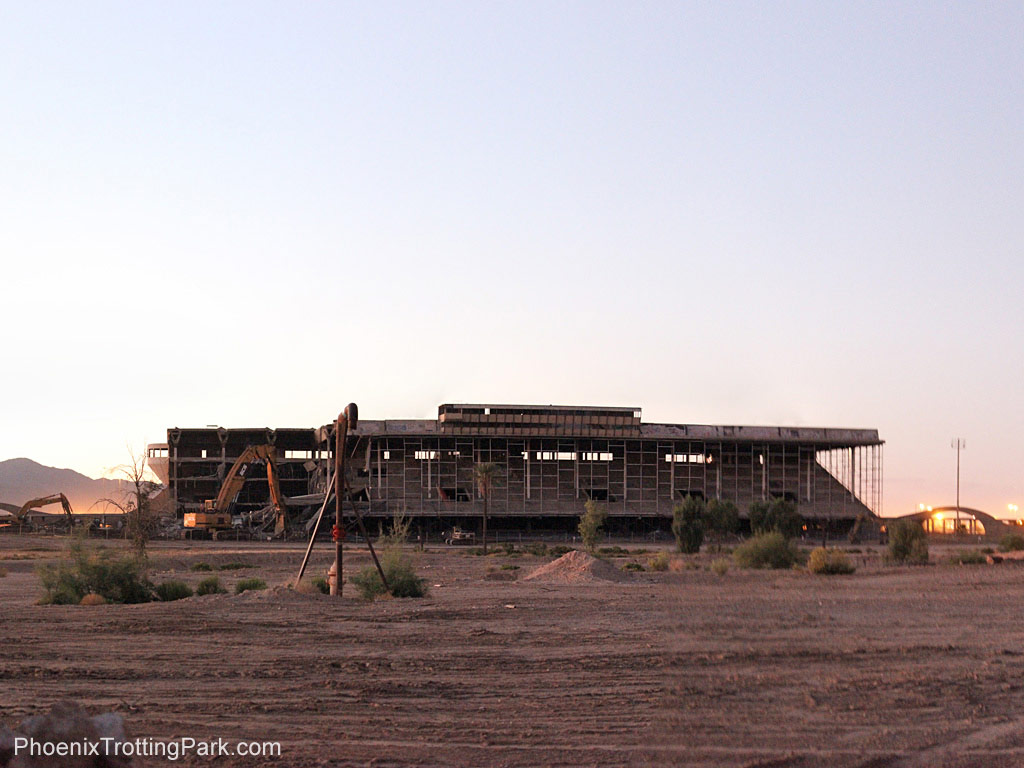 One corner of the building demolished on Sep. 27, 2017. Photo by: PhoenixTrottingPark.com.