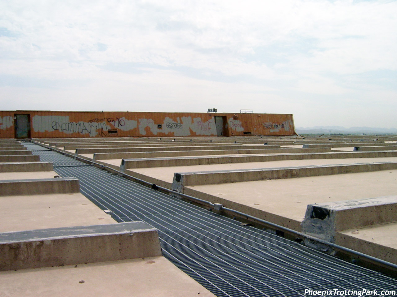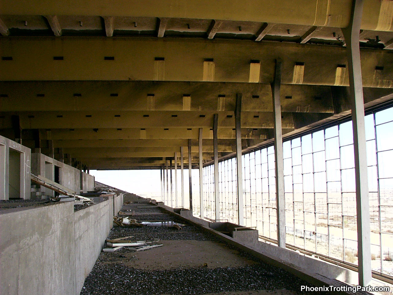 It is possible to see the hollow V-girders that once supported the roof and doubled as heating ducts during the winter months. Photo by: PhoenixTrottingPark.com.